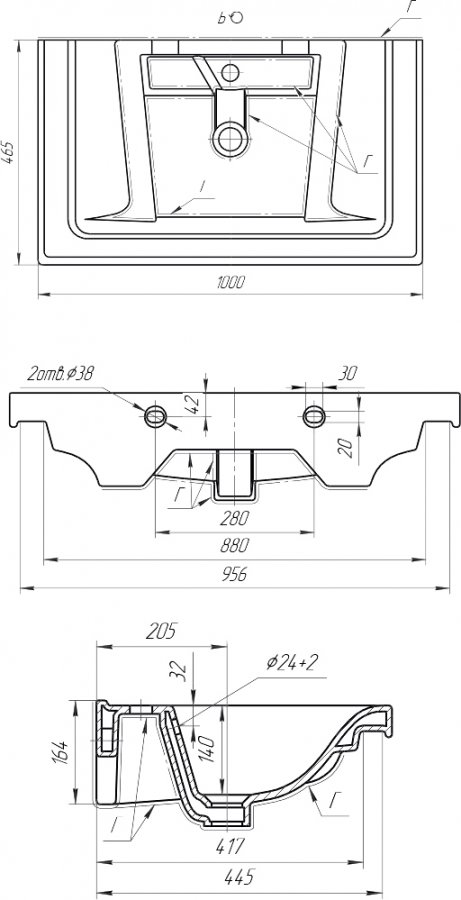 - Раковина Dreja Euphoria 100 (ш/г): 1000х465 мм
