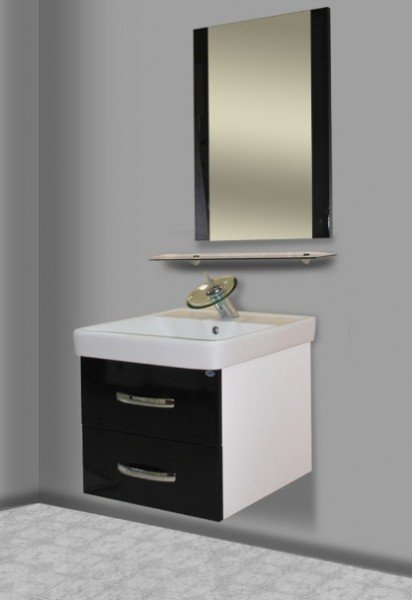 Компактный гарнитур Bellezza Рокко 50 с черной глянцевой эмалью на МДФ-фасадах станет настоящей находкой для современного интерьера небольшой ванной комнаты. Подвесная тумба с двумя выдвижными ящиками укомплектована керамическим умывальником чешского бренда Dreja и дополнена настенным зеркалом со стеклянной полочкой, крепления к которой входят в комплект. Подвесная конструкция избавит от трудоемкой уборки.