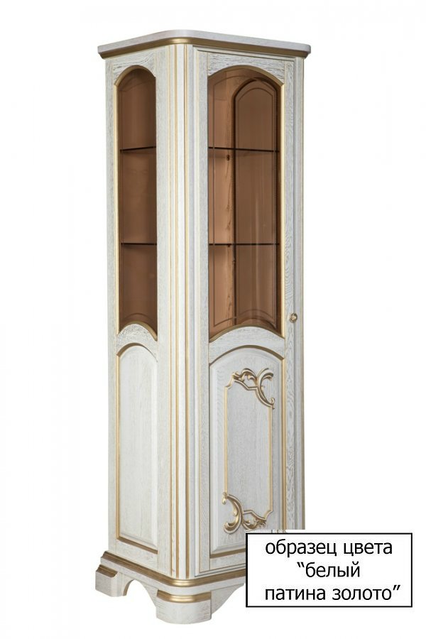Пенал напольной конструкции с левым расположением петель Bellezza Жардин 60 вобрал в себя всё великолепие классического стиля. Выполненный из массива дуба в богатом сочетании – белого с позолотой, он является воплощением роскоши и элегантности. Его скруглённый фасад обильно украшен художественной резьбой, декорированной патиной, а золотые ручки инкрустированы настоящими кристаллами. В функционал пенала входят удобные полки, которые скрыты за двумя распашными дверцами с доводчиками.